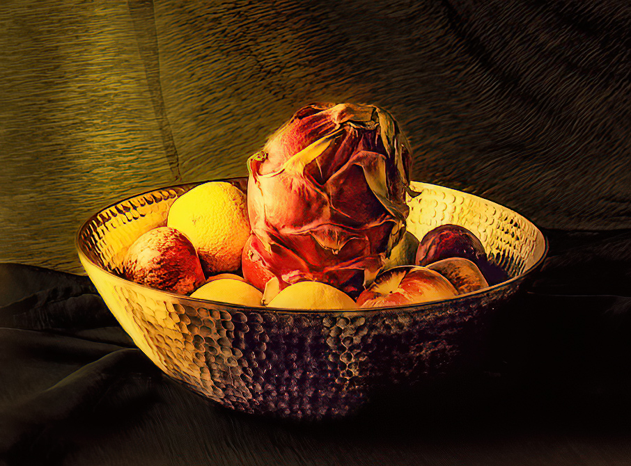 Connie, Beautiful still life. Love the tones. I used Topaz DeNoise and Sharpen. Used Curves and added some contrast. |