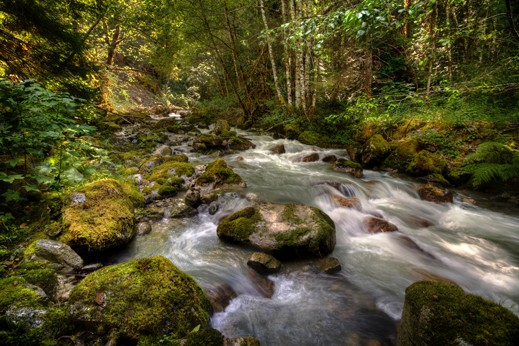 I like the image, except for the bright background in the upper left. Your eye just goes to that area first. The foreground and all the rocks are good for me. |