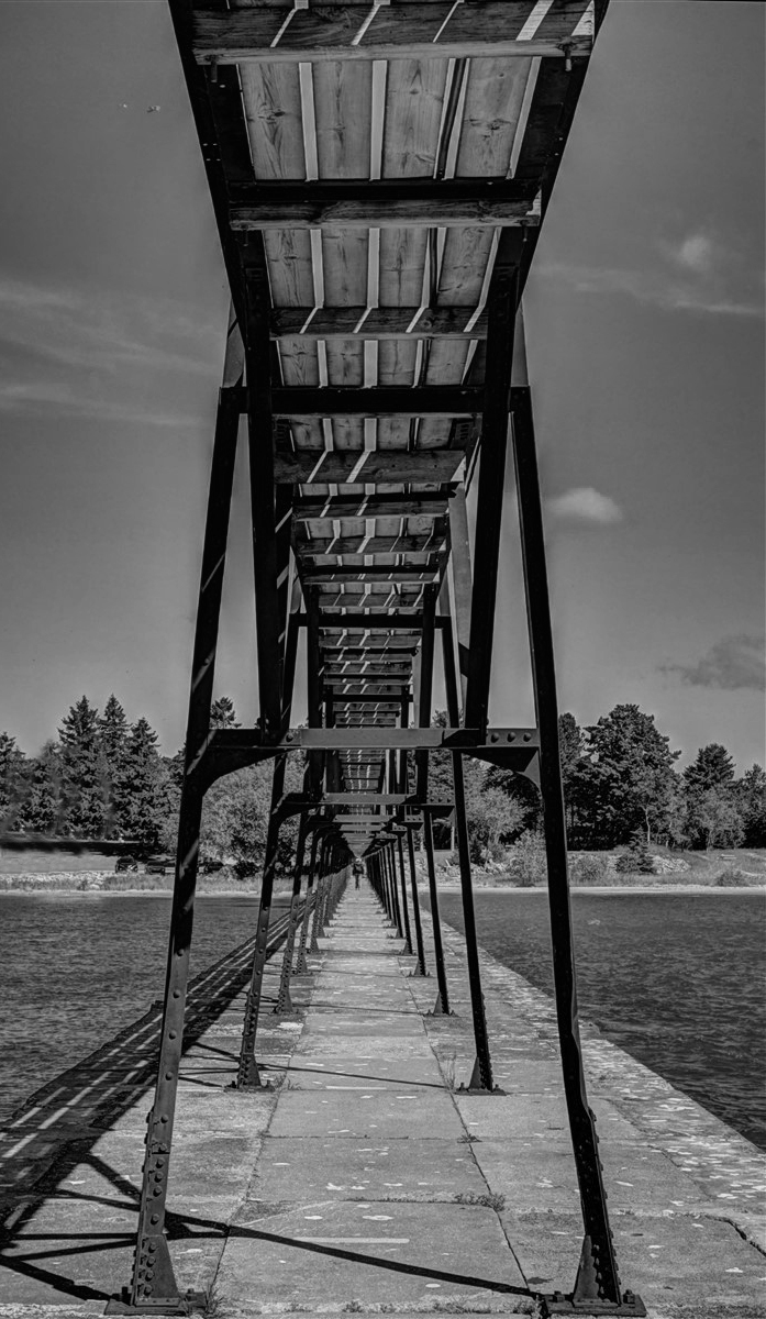 Nice shot, I would agree with the rest, clone out the building and cars, I redid the conversion and used a yellow filter to bring out the clouds and sky, plus I got rid of the building and the cars. I do like the person in the middle of the structure, it brings depth and scale to the image. |