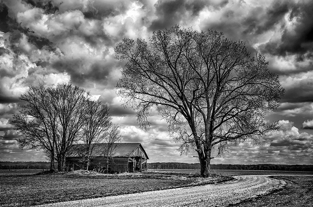 I like your image, but I have the opposite suggestion, I would lighten the road to make it more distinct. My eye follows the road to the end then goes into the clouds and back to the building. Just my thoughts on it. |
