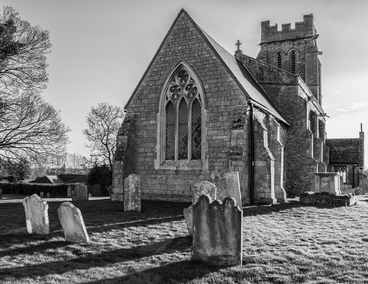 I find this a very interesting image, a lot of good tones. The shadows somewhat make the image. My only problem and it is minor is that the shadows lead my eye out of the photo. I flipped the image and now the shadows lead my eye toward the church and the grave stones. Just a thought. |