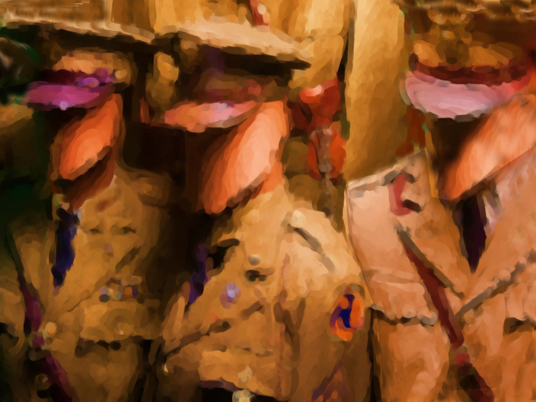 Wow! The two soldiers on the left look almost as if they have beaks, and make for a very surreal image. From this point of view, the soldier on the right looks out of place. If it were mine, I would clone a chin from one of the two on the left, onto the one on the right, Darken his uniform and one or two bright spots and then you have perfection |
