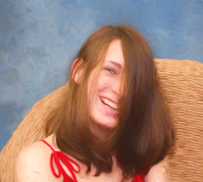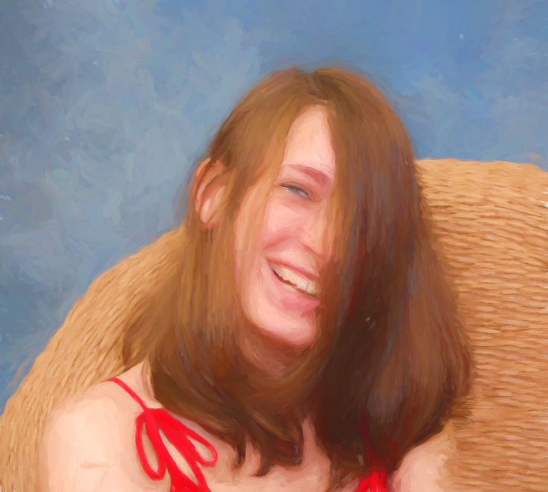 The crop is good, but I don't feel that you have done Alison any favours with this treatment. Rather than the blotches and smears which I don't find very painterly (Unless you are into Jackson Pollock), I would have preferred a more subtle approach which would suit the impish good looks of the subject.
