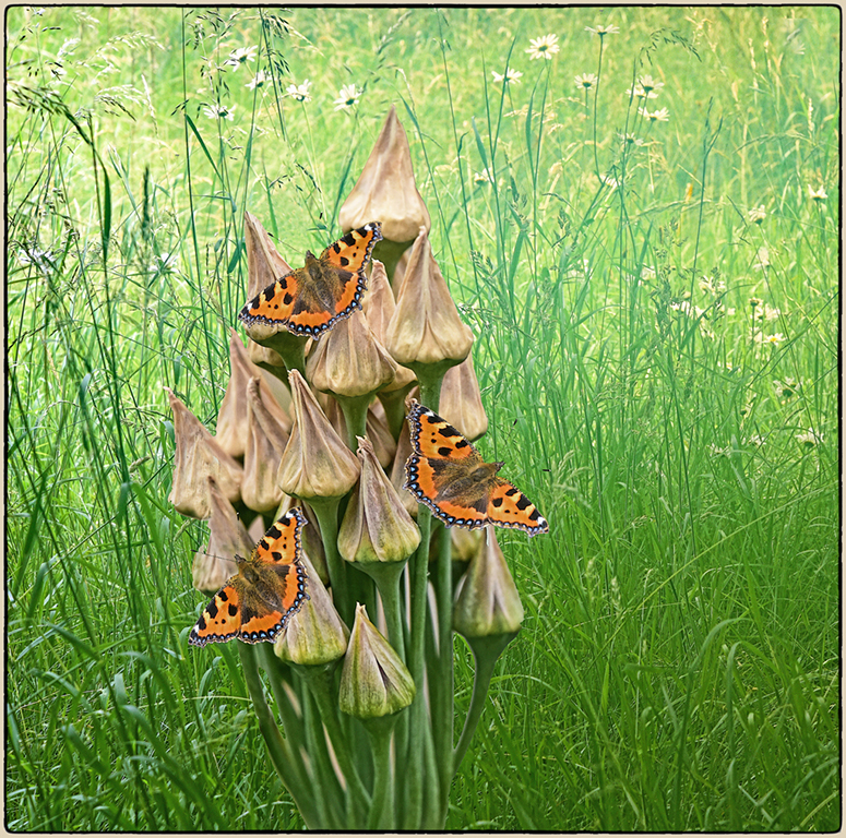 I prefer this one to last month's! The whole set up works very well indeed. I love the colours too. Whenever I take shots of flowers I always find that I have to clone out an insect somewhere. In this case perhaps you could add a bee on one of flowers, just to be perverse. (Just a flippant suggestion!) |