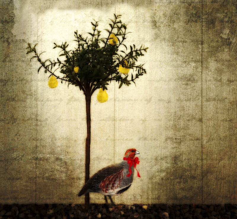 I like what you have done with all the ingredients to make a super seasonal image. I think that this would make a great Christmas card mage for friends and relatives. I agree that festive partridge works well on the ground rather than on the tree. My only suggestions would be to lighten the image slightly I have used the equalise filter, and to darken the top centre a tad to imitate a rough frame. |