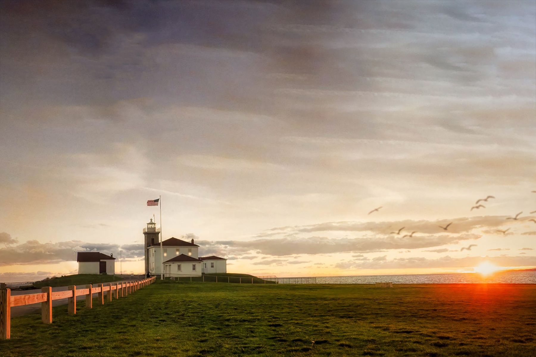 You certainly improved this image with post processing. I think the light house, the fence on the left and the sky are the best parts of this image. The fence is a very effective leading line. Yet, keeping that leading line results in a very large foreground of grass - nothing but grass. |