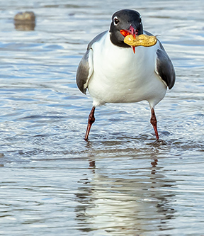 What a great capture! I would title this "Look what I have". I does make me smile. I think the square crop is perfect for this image. I like the refection. I wonder if cropping a bit off the right would help the image. |