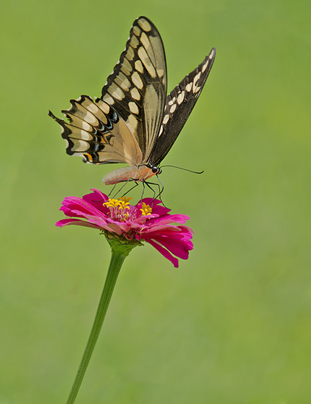 Beautiful shot, Wanda! Great post-processing also. The only thing that I might suggest is to angle the butterfly/flower a little. See what you think..Super job! |