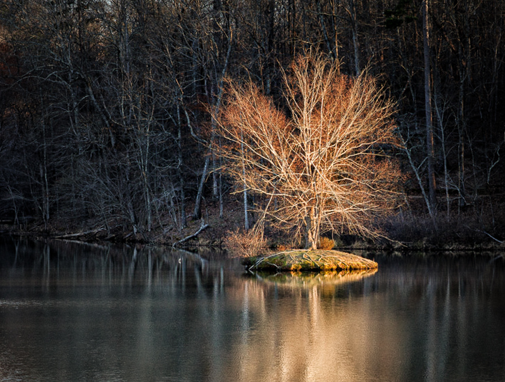 I agree with the comments - a really good spot and capture. I agree with Mark about the background having far less importance. In LR is used the radial filter over the tree and reflection. I then inverted it so that the effect would only be on the background and the tree would stand out a little more. |