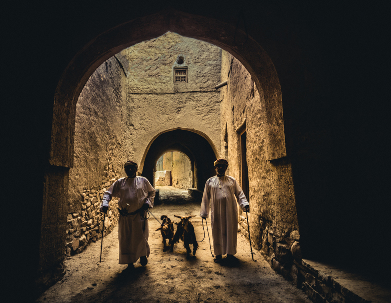 Mark's idea of cropping from the left and right works well. I would suggest leaving the arch as it is and cloning in some of the bricks to remove the blue sky, that would leave the elders as the main focus. I like the silhouette effect as it adds a little mystery to the image. |