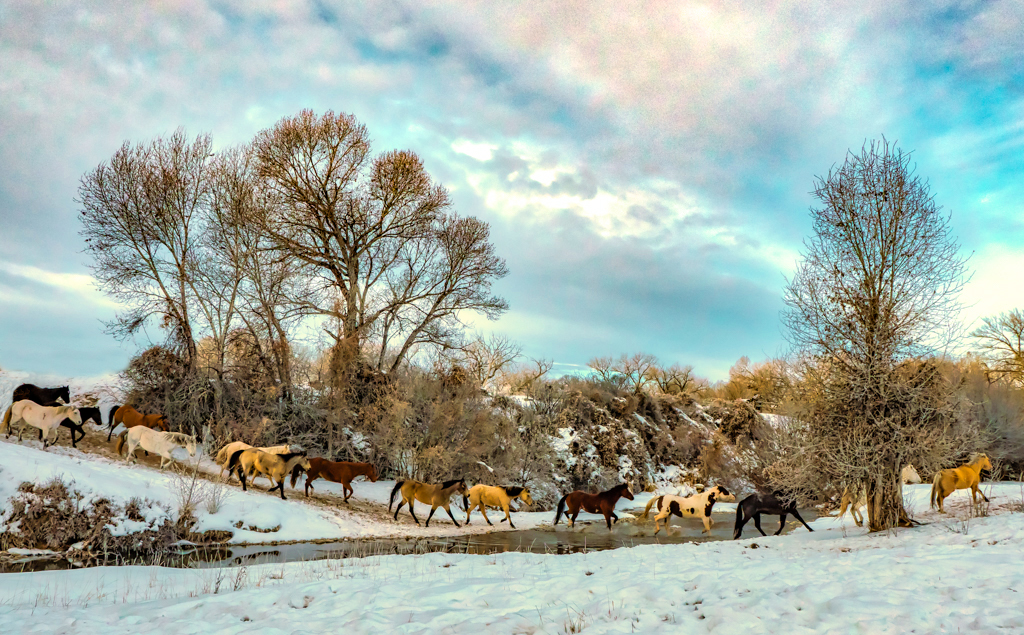 I love this photo. I took it into PS and just removed the two cropped horses on the right. That left the other 3 that I felt added balance to the photo. I cropped the bottom a bit and then took it into Luminar and used the Auto Smart Enhancer at 50%. I thought it made the sky pop a bit more. |