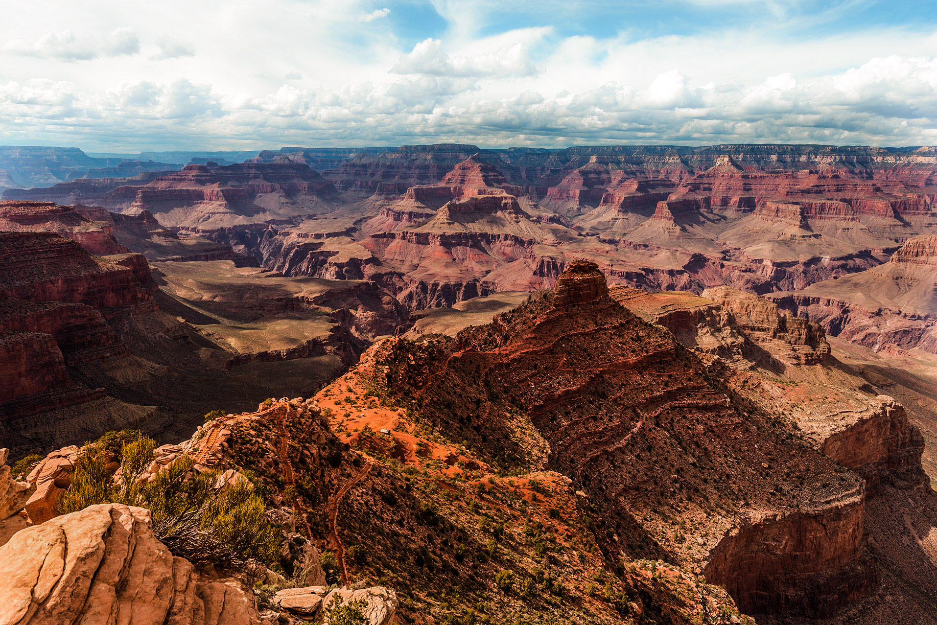 I love the composition of this photo. I just felt it needed some more processing to bring out the colors better. I took it into PS Camera Raw and changed the white balance by using the eye dropper on the clouds. That added more yellow and magenta. I then used the adjustment brush on the clouds to soften them by decreasing clarity and contrast. I also used the adjustment brush to add clarity and contrast to the canyon area, and decrease exposure. I also added a bit of dehaze. Your decision if you like what I did. |