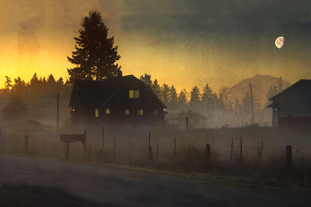 Nice job with the composite. I took it into PS and used the adjustment brush in Camera Raw to lower the exposure on the moon a bit to help it blend better. See what you think. I like the lights on in the house. Makes the house seem welcoming. |