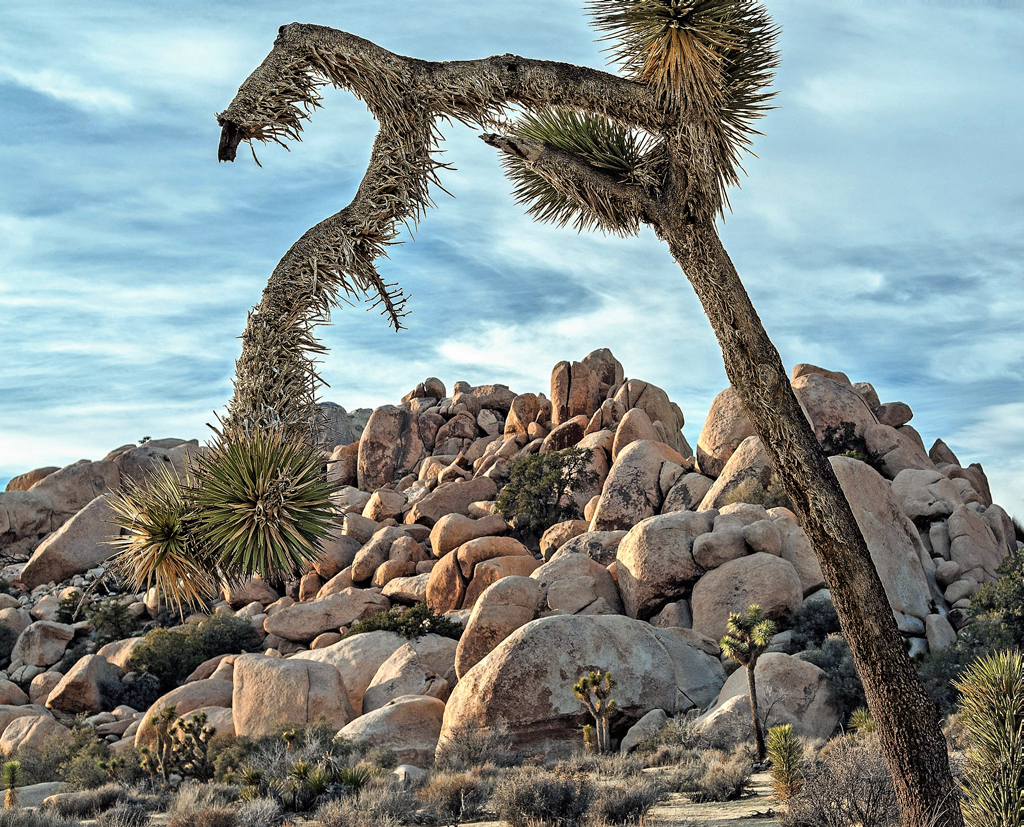 I was just at Joshua Tree NP and have a photo this month in Group 71 if you want to check it out. The tree has a cool look while the rocks have a warm look because the sun is shining on them. I warmed the whole photo a little, then used the adjustment brush in Camera Raw to warm the tree. Here is the result. You can decide if you like it. |