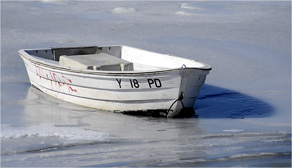 The contrast of color is nicely represented here and I love your creative capture of the rope in relation to the boat. |
