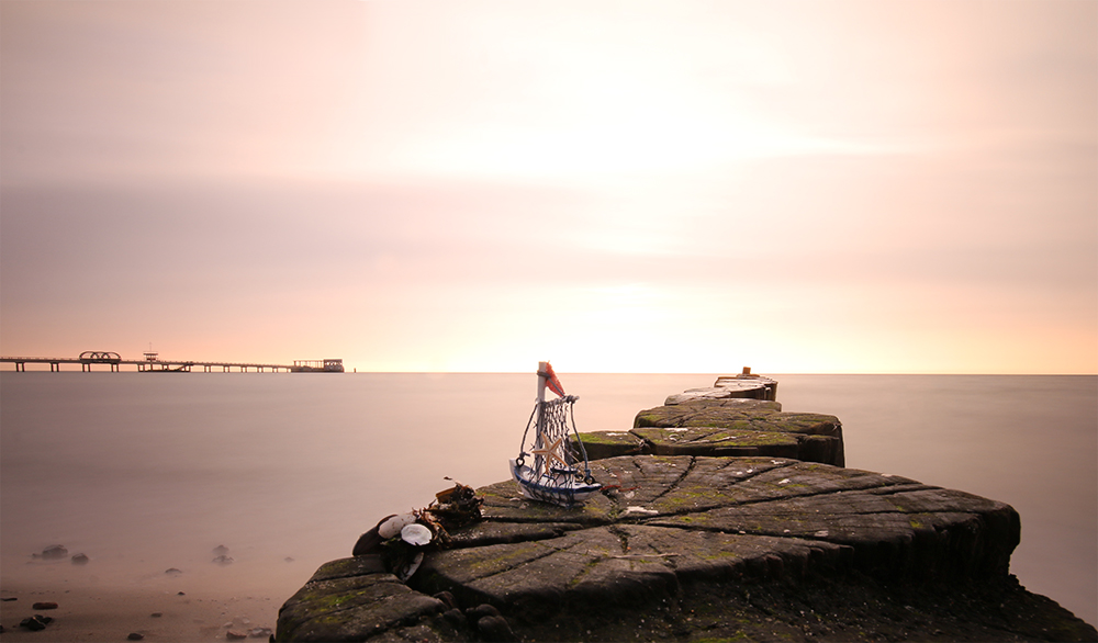 I like the dynamic of these lines - they are nearly "sucking" the eye into the ocean. I would led the black rock stay. |