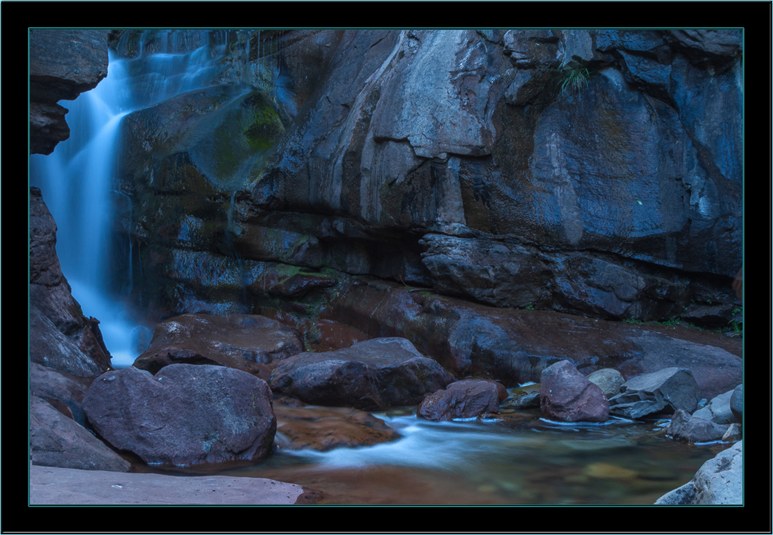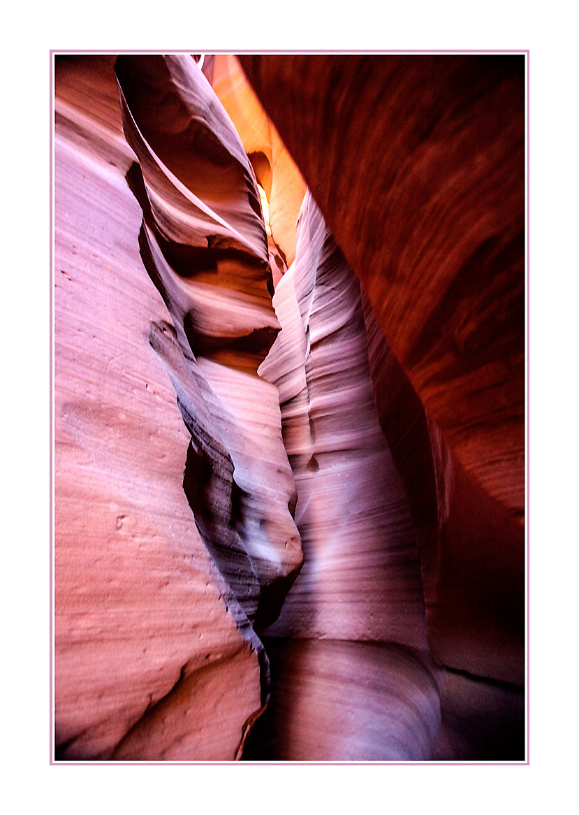 This picture is great in it's colors - I wouldn't change it into b/w. But I needed some time to figure out what was bothering me. I know it is a narrow canyon... but the size of the picture ... it feels like a bit suffocating my eyes (hell, lack of vocabulary here - sorry). After playing around with the picture I settled with a plain - bigger frame.