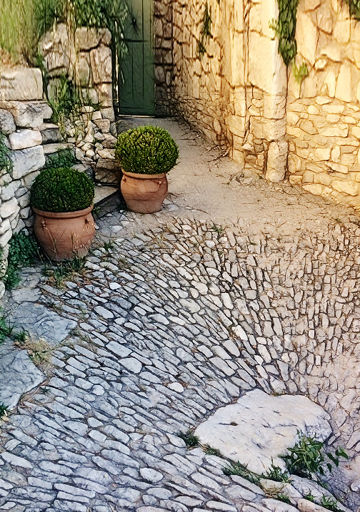 Such a nice, old backyard with this nice ground rocks. I even would emphasize a more vintage look - like the added one. I used the Redfield Fractalius filter for it. |