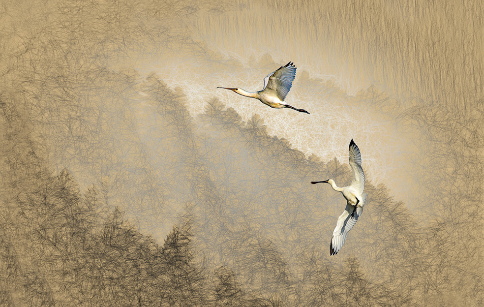Wonderful plain and fitting colored. I only would suggest to focus more on the birds by cropping a bit. |
