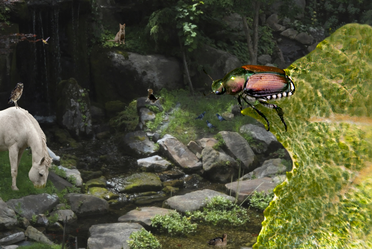 But I have to admit, that my eye struggled a bit to get, that the bug and the leaf are ABOVE the scene. Maybe it should be more OUTstanding (the blurred leaf making sharper etc.). I tried it on my version, but I am sure there are other/better ideas around?! |