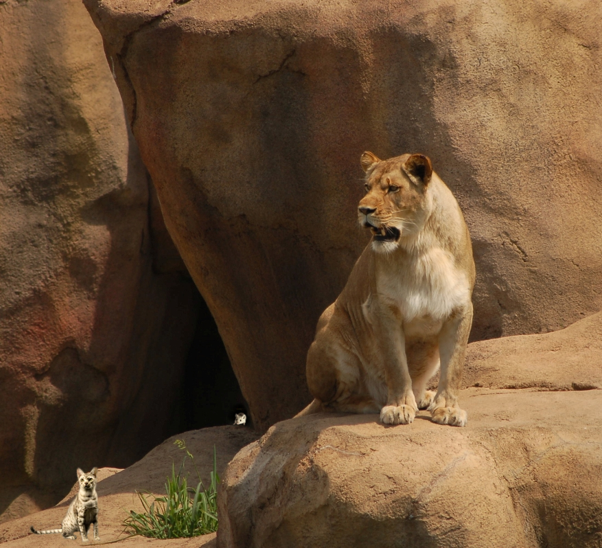 Funny idea, putting this little mouse between two cats. And it sure isn't easy to get all proportions right.