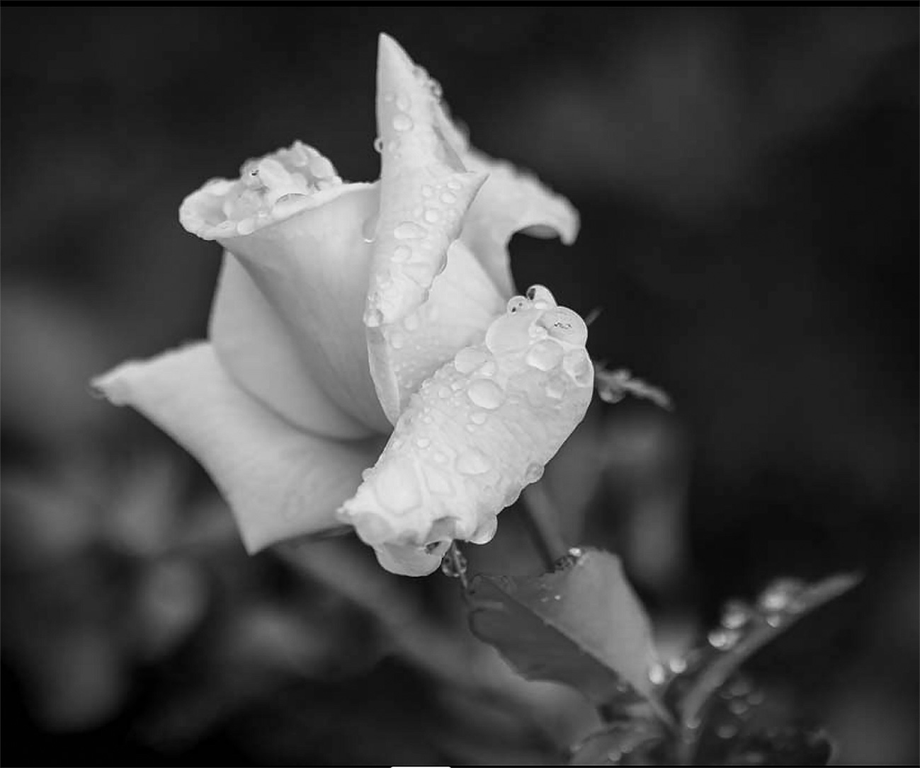 This is a beautiful rose. It just needs to have the whites toned down a little bit. By doing that you can see the water drops better.