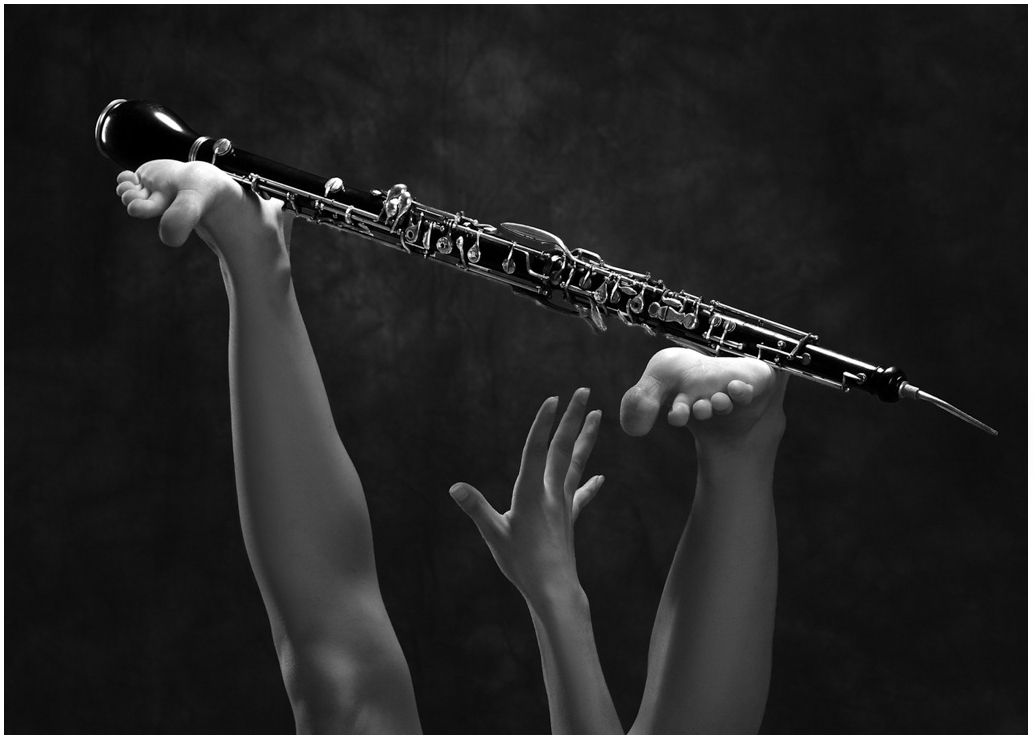 Love it! I love the way the toes are ed, how far away the hand is, how the hand is really stretching out, the angle of the oboe, the title -- simply brilliant! And beautifully executed.