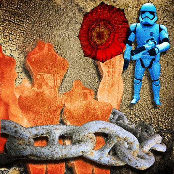 The humanoids on the left distract me from the drama of the storm trooper and the victim; I would consider moving them down a little bit.