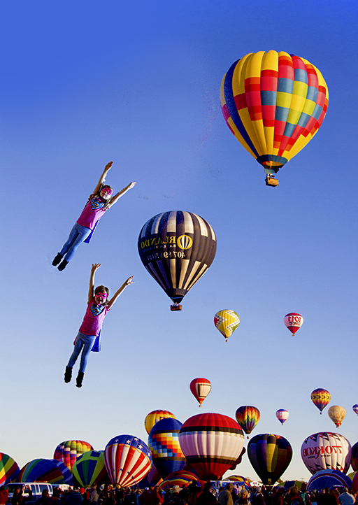 Your granddaughters are adorable, and they look wonderful in this image. You even made their feet point down to get that flying look. Nice job with making their shadows match the balloons.