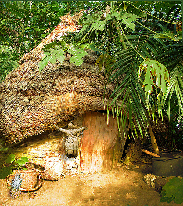 My one suggestion has to do with the nearest leaves - they are so bright and vibrant that they distract me from the hut and everything in front of the door. I would consider darkening them a bit. |