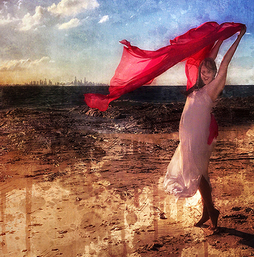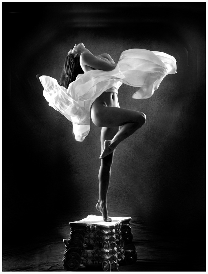 I love the light and the pose. Beautiful job on the blending of the photos; the fabric looks perfect.