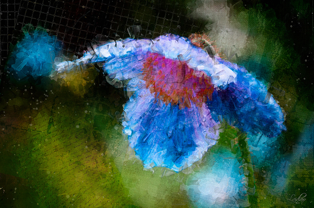 When I first saw the grid in the lower left corner, I thought it was giving the effect of the canvas showing through. Then saw it elsewhere. I've never noticed the use of a grid like that before, and at first was a tad uncomfortable with it, but after a little thought realized it works very well. Very interesting technique!
