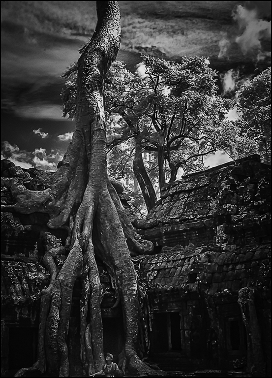 The man in the image really adds to the impact of that encroaching tree. It feels as if it goes up forever, like the beanstalk in Jack and the Beanstalk.