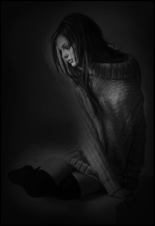 Wonderful pose in beautiful light. Lovely model. I love her hair and the sweater is fabulous -- all that texture and drape. Perfect!