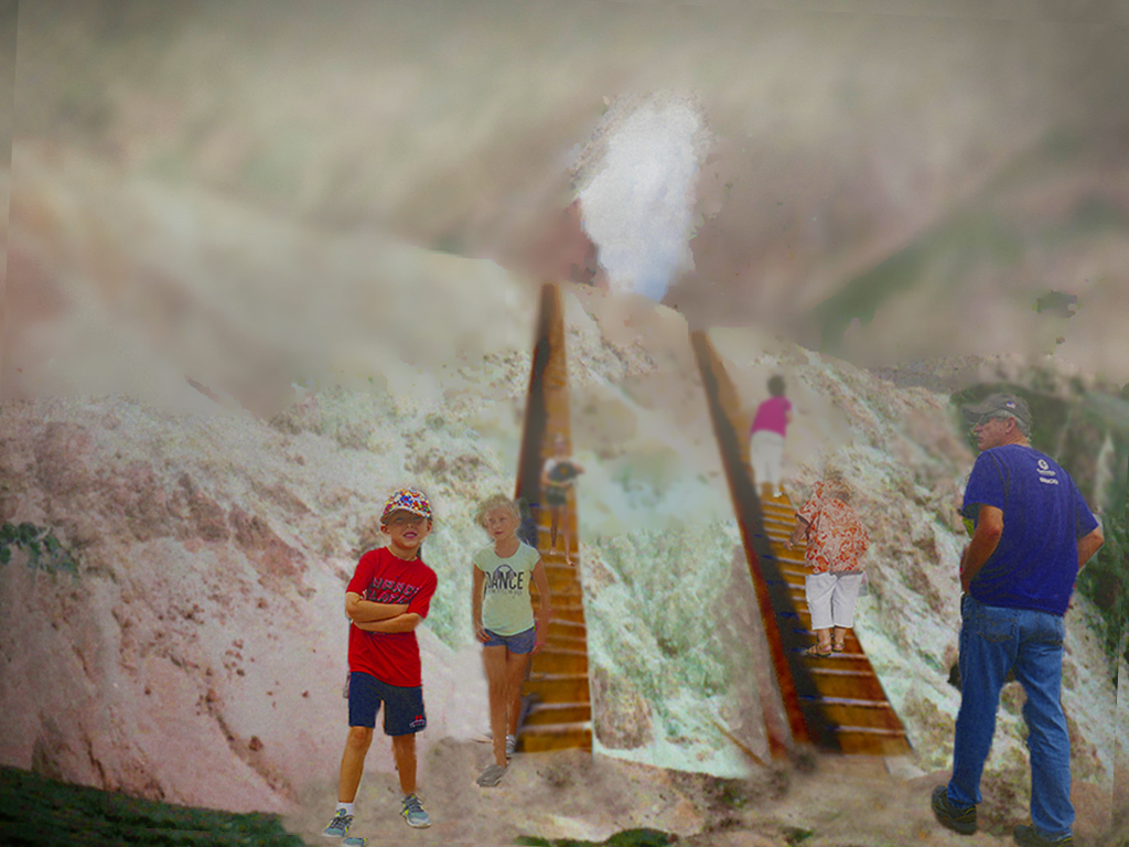 I really like how the adults going up seem to be sort of plodding and the children look curious and engaged. All that youthful energy!