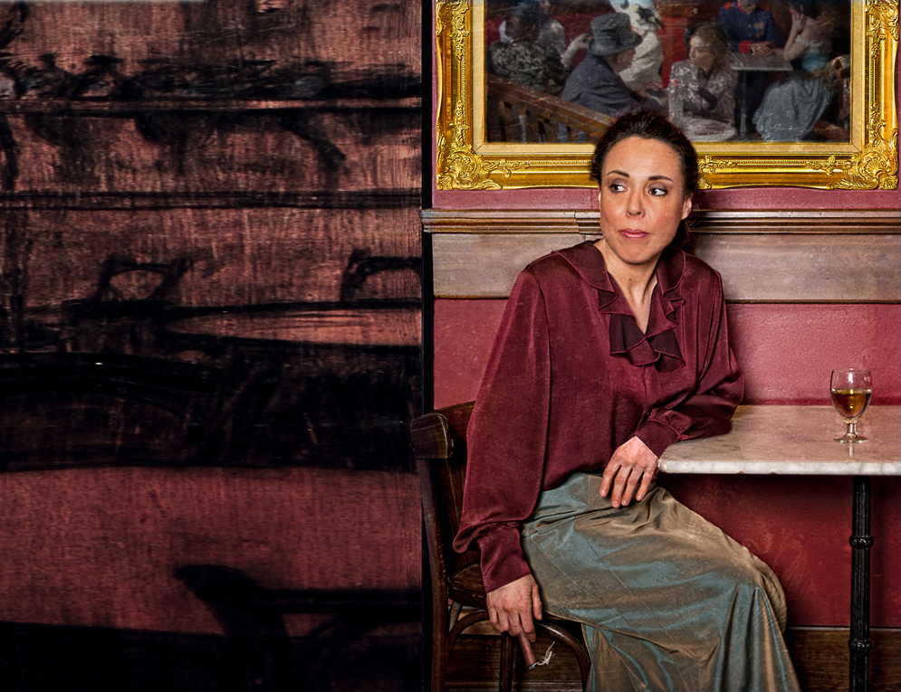 I like having two views of her, with the larger face somewhat transparent.