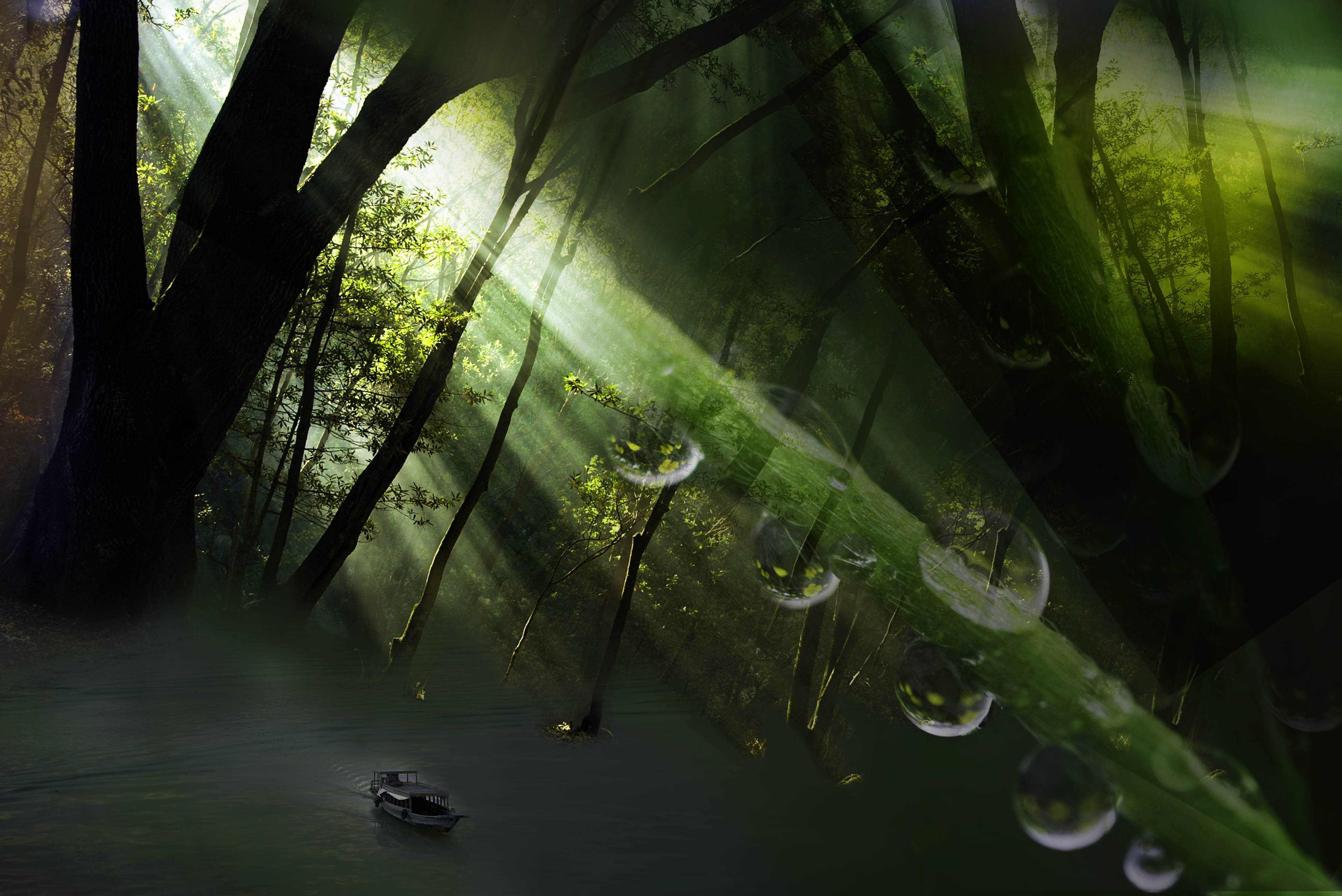 I like your version per Phillipa's suggestions. But I miss the interesting angle of the tree against the dewy stem. You've got such an interesting dynamic going on there, especially with it framing the boat.