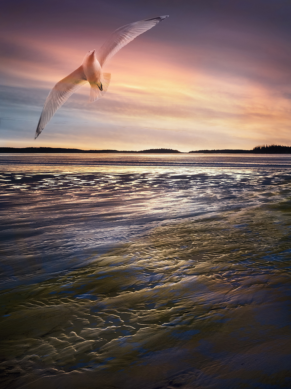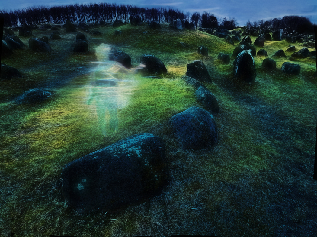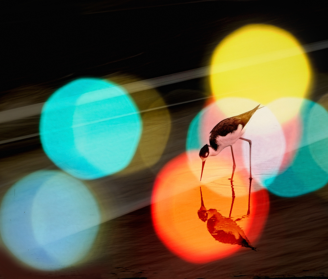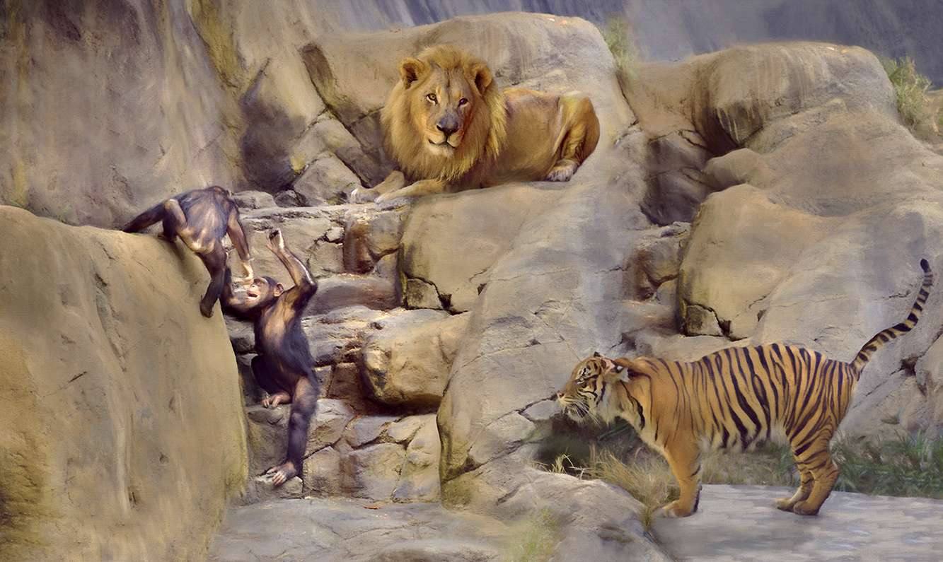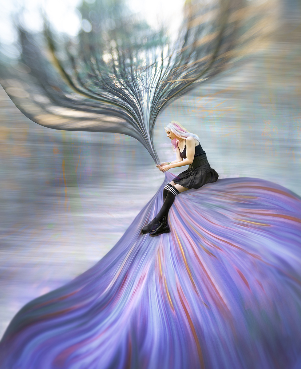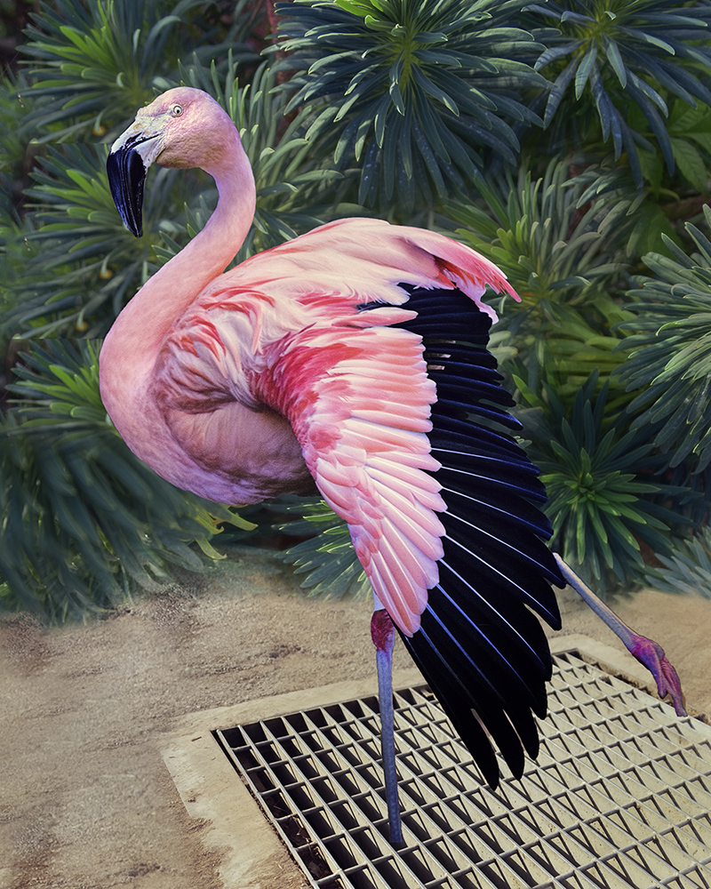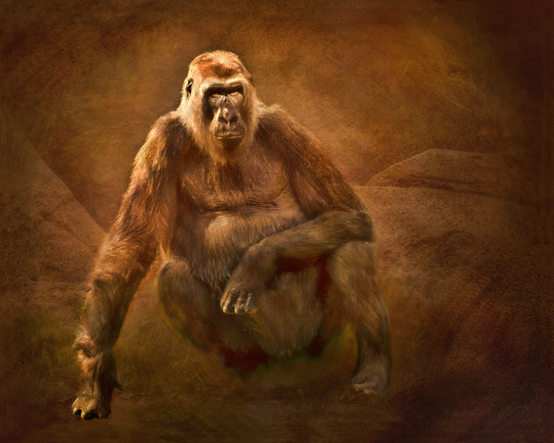 The sweep of the mountain range on top and the trail on the bottom lets my eyes explore the whole image and then brings me back to the deer being placed. I love how everything is desaturated except for the "hand of God". The deer is in such a great pose, both being interesting looking at the viewer as well as, with the hand, looking like a toy.