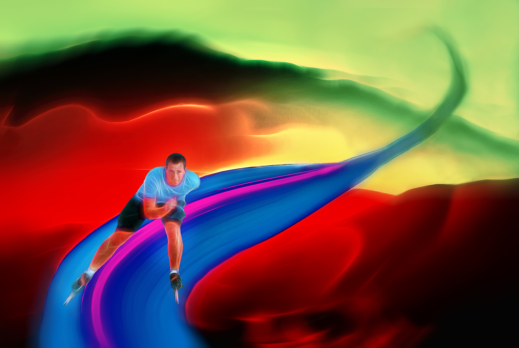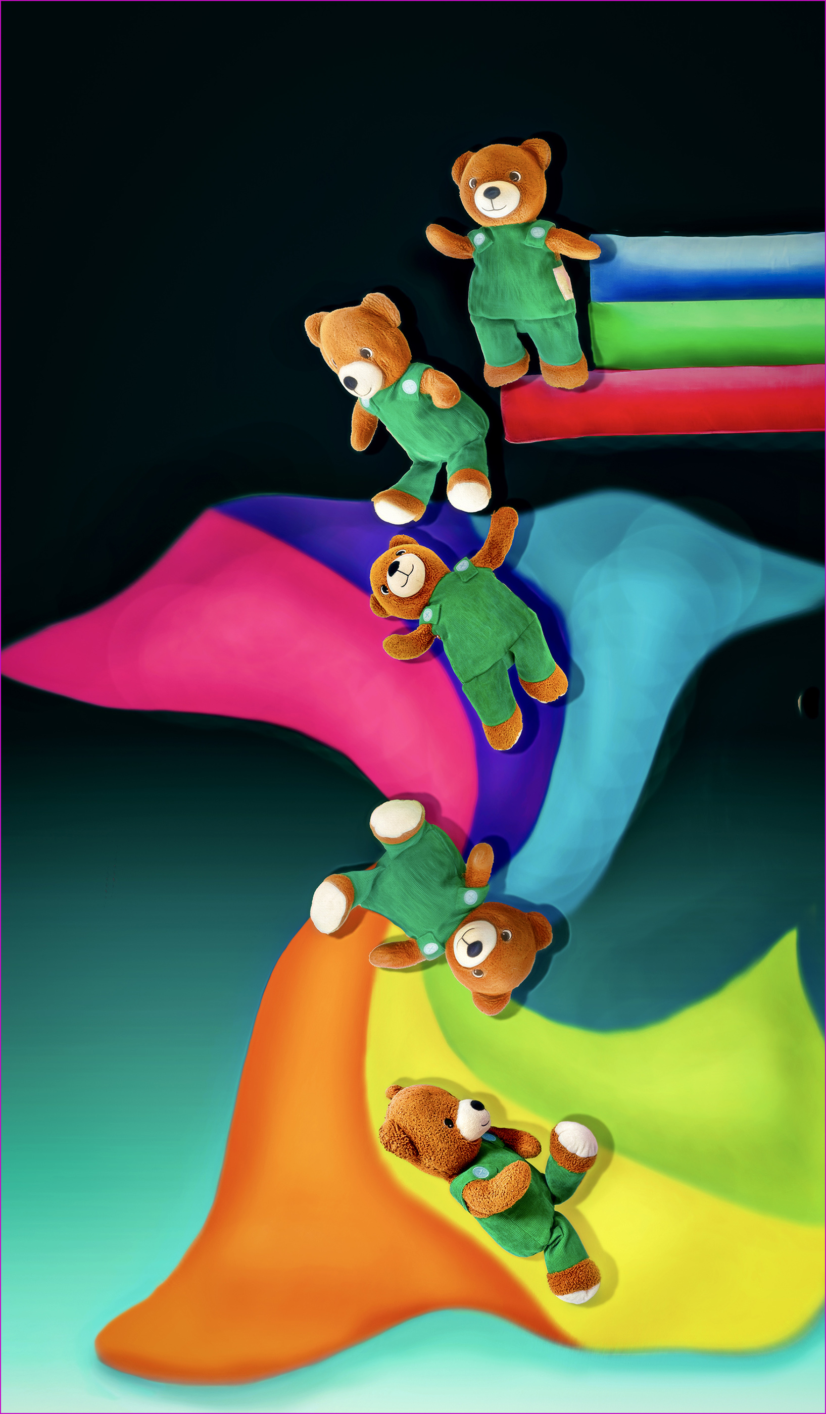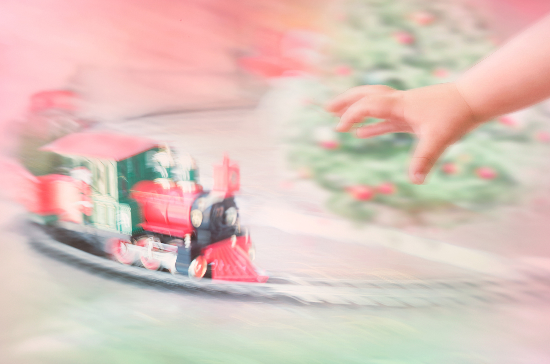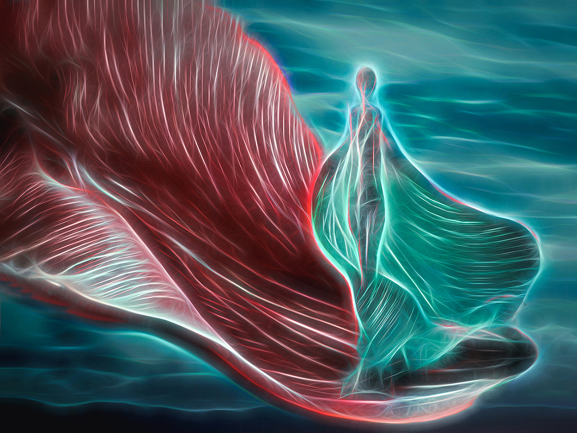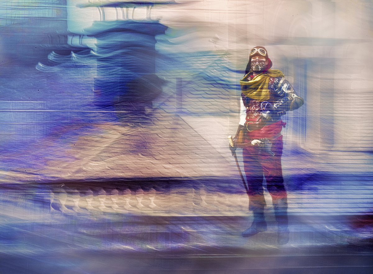 The sweep of the mountain range on top and the trail on the bottom lets my eyes explore the whole image and then brings me back to the deer being placed. I love how everything is desaturated except for the "hand of God". The deer is in such a great pose, both being interesting looking at the viewer as well as, with the hand, looking like a toy.