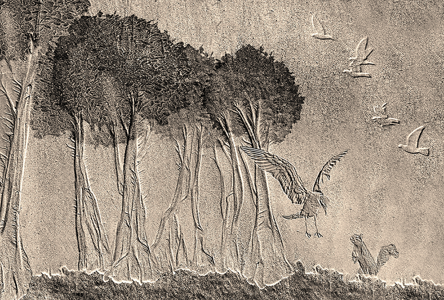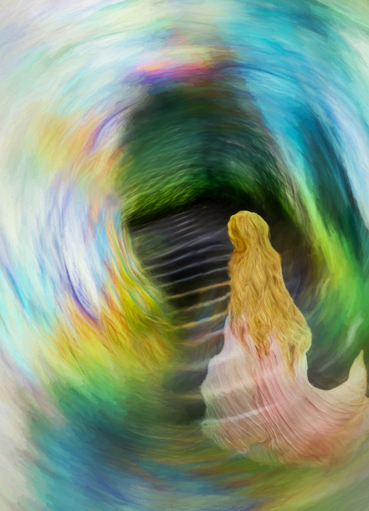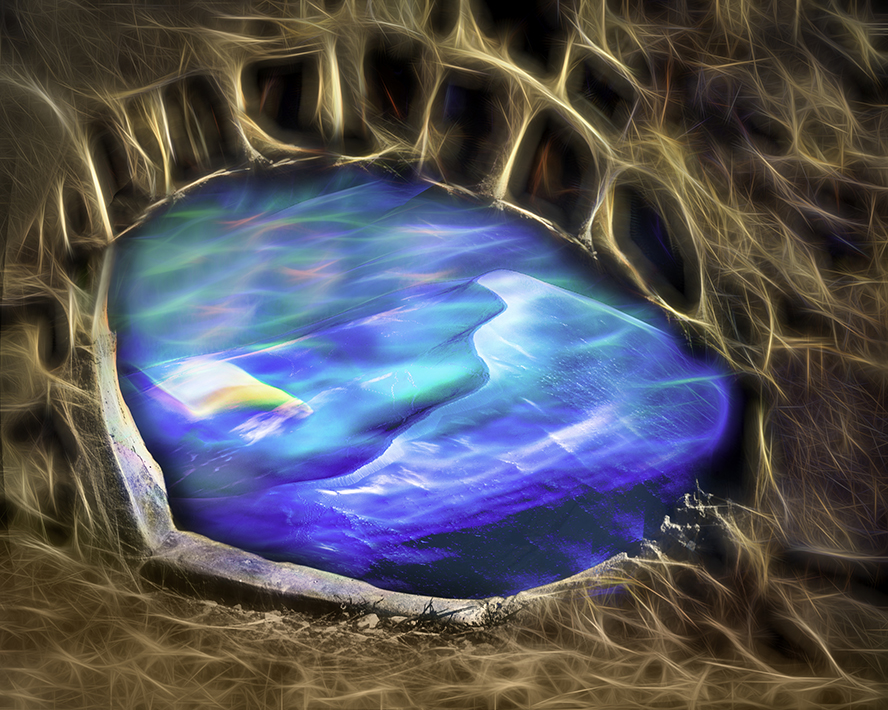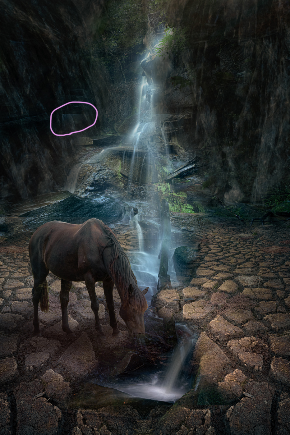 I love the way this image opens up from the top, getting wider and wider until we gt to the horse, where it becomes a tiny waterfall. The repetition of all the waterfalls is really wonderful, and it is echoed in the cracks of the dry earth.