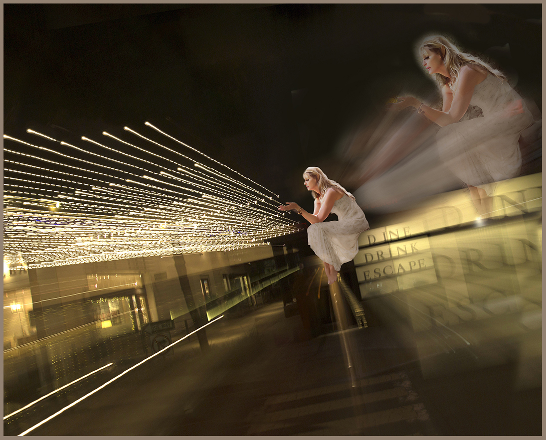 I like having the lamp post in there, and I think you did a great job adding its color to the house and leaves. However, it's the brightest thing in the image, so my eye keeps going there instead of the house or those wonderful glowing eyes. You might consider making the lamppost smaller and less bright, and brightening up her eyes. |