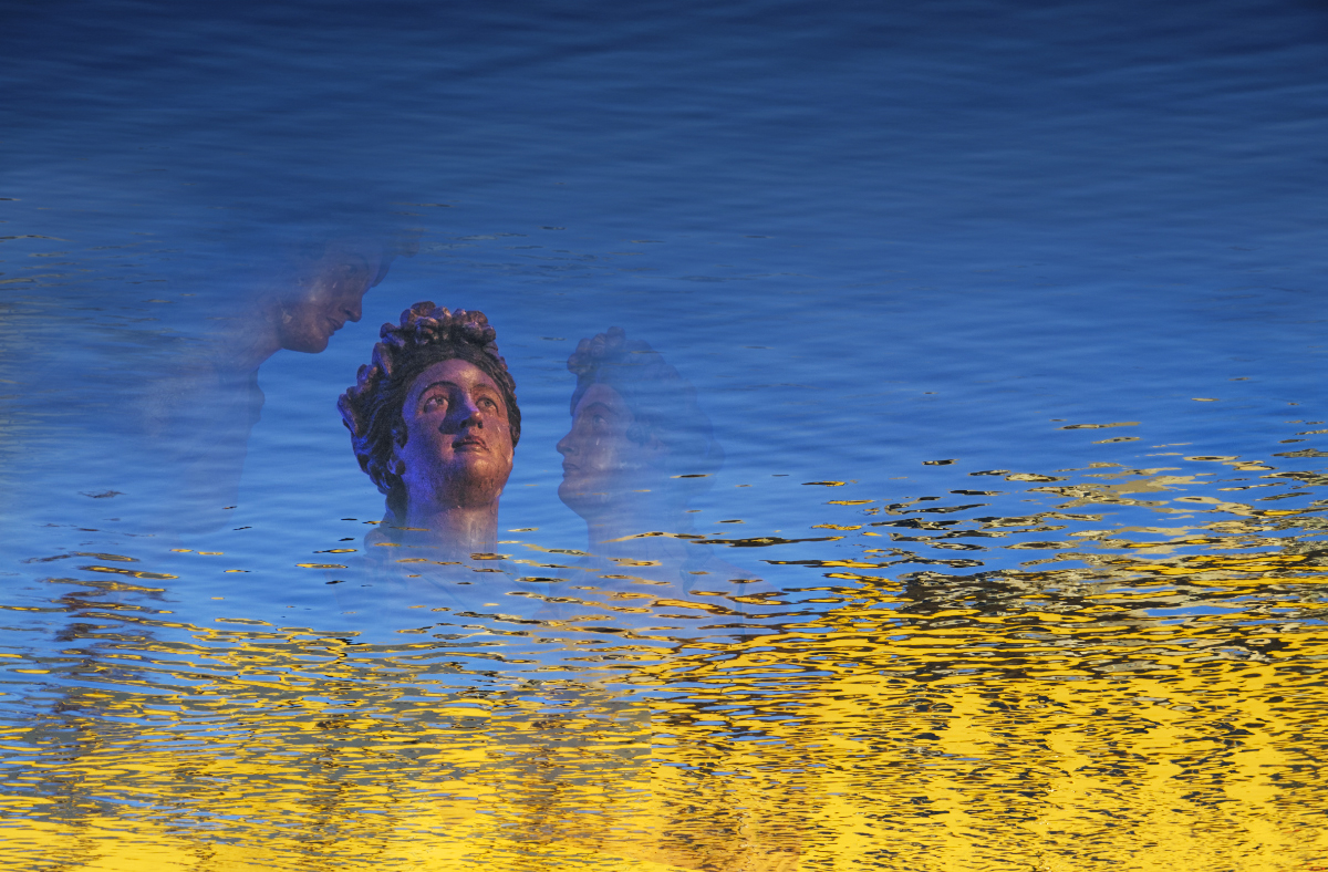 For me, this is a very dramatic image. The gold and blue of the water is really stunning. The poignant look on the Little Mermaid is wonderful - I can see the yearning and determination. I like the light on her face.