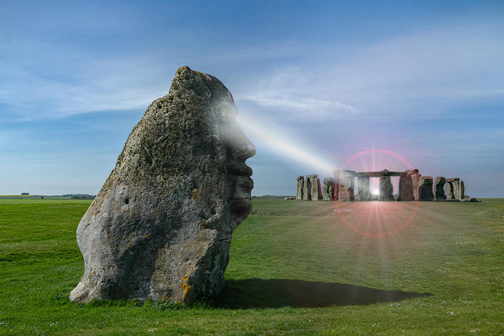 I think the simplicity of the elements really works here. I feel as if there is heat radiating from that power beam. The color glow of the beam as it hits Stonehenge gives me a feeling of transformation - something is certainly happening there!