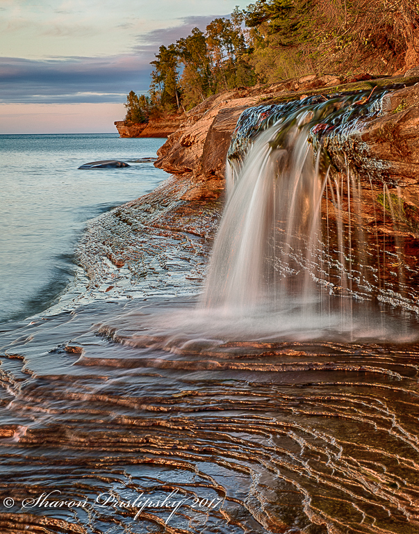 I tried paying with your image which, surprisingly, opened with a slightly different and more pleasing color gamut than looking at it online. I added a touch of green to the rocks and trees and added some negative clarity to the trees in the back, which looked too sharp for my taste. I was trying to not steal the show from the waterfall and wonderful foreground.