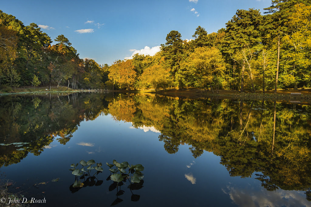 Wow, what a perfect reflection. I love the composition with the plants in the foreground between the "V" of the trees. Nice job. I don't think the slow shutter speed hurt you at all as everything looks sharp to me. It did look to me that there was a glow along the top of the tree lines. I took a try at processing a bit and brushed those areas with a reduced highlight adjustment. I also brushed in some exposure to the shadows on the left to bring out more color and detail in that area. Very pretty |