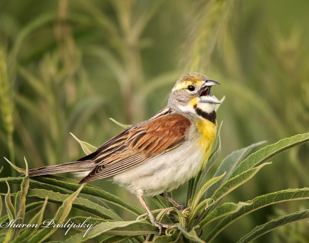I like this image a lot. The perch is interesting and the background provides a nice soft color contrast. It was fine as is but I was a bit distracted by the blade of vegetation behind the bird's head, which looked a bit sharper than the vegetation around it. I added some blur to that stalk and also did a bit of burning on the bird's brown feathers and as a slight vignette. |