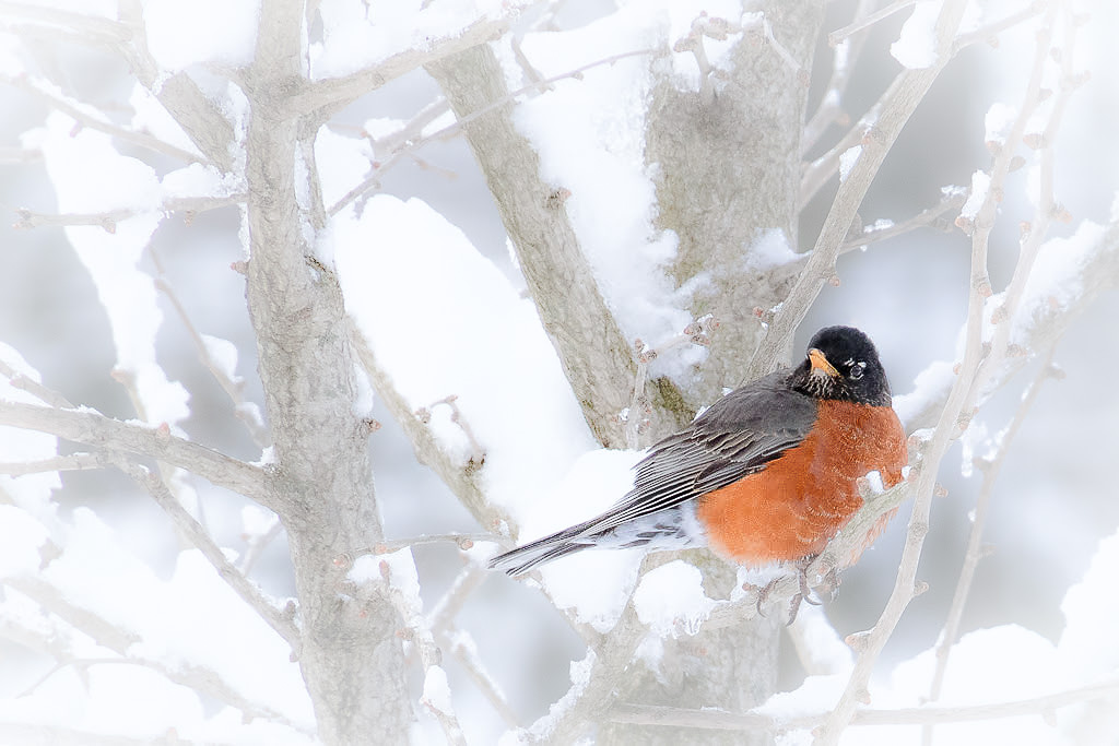 I like this image and immediately thought of Thanksgiving or a Christmas card. My mind wend the opposite direction than John and Sharon with regard to the whites. It could be a monitor calibration difference but they did not look blown out to me. To try something different I sent the image to PS and reduced the dehaze to lighten up everything but the bird and took off some clarity, masking out the effect on the bird. After that I added some sharpening. |