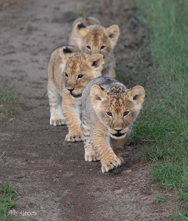 Lions are my absolute favorite animal. When they aren't sleeping, they are entertaining to watch. These guys are cute and I like the line up. My first impression, when I saw the black and white was that it was embossed or had some kind of affect to it. While I often prefer B & W, when I have the courage to not use the color information, in this case I'm partial to the color. I played with it and toned down the colors of the background and enhanced those and the luminance of the cubs. |