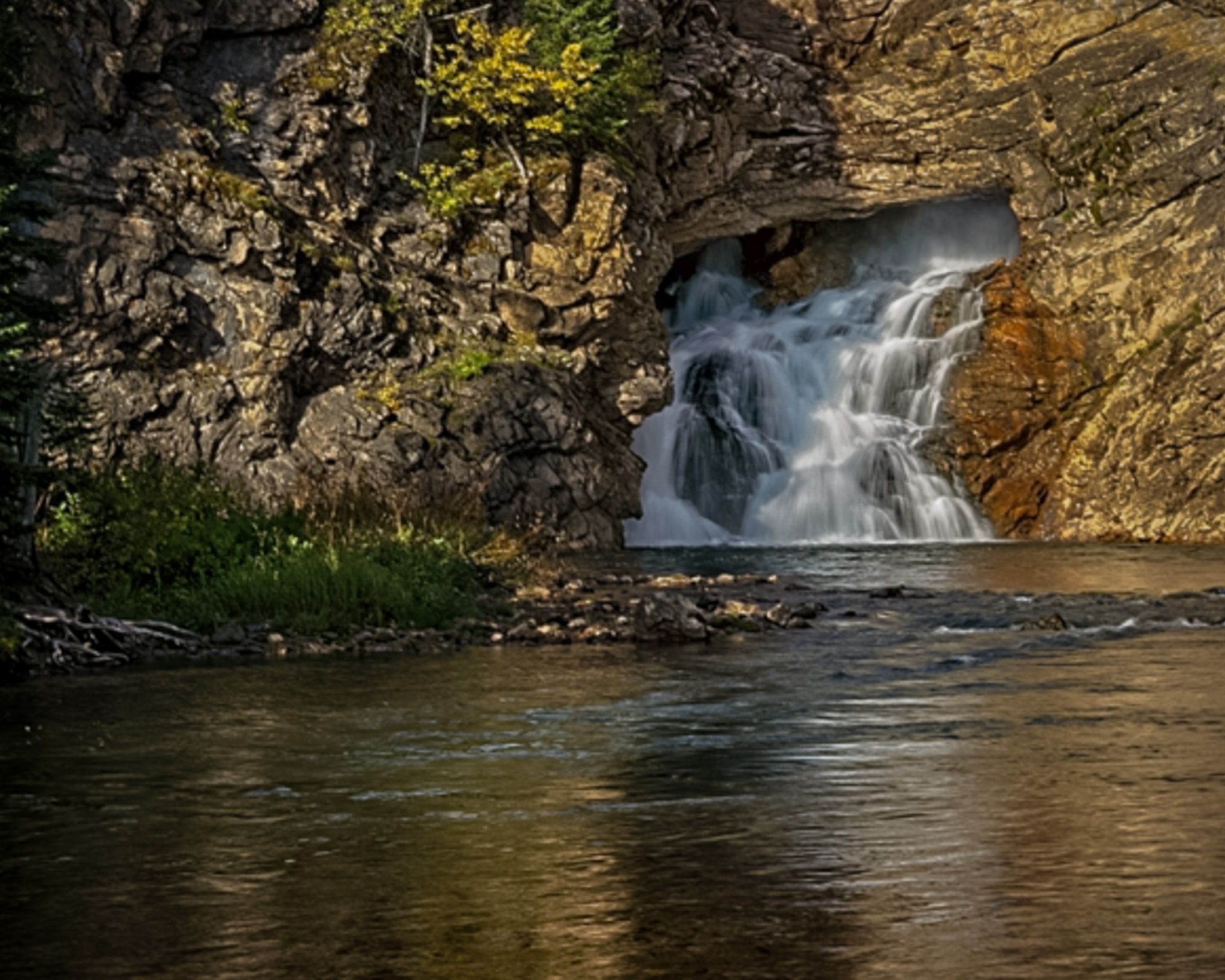 Very pretty and unusual looking falls. My attention is split between the mountain top and the falls. You take what you can get but I bet this waterfall would show its best with a light overcast. I think a bit more detail could be pulled out of the shadow area of the falls with some dodging. I also might consider toning down the blue of the sky which looks better to me in the original.