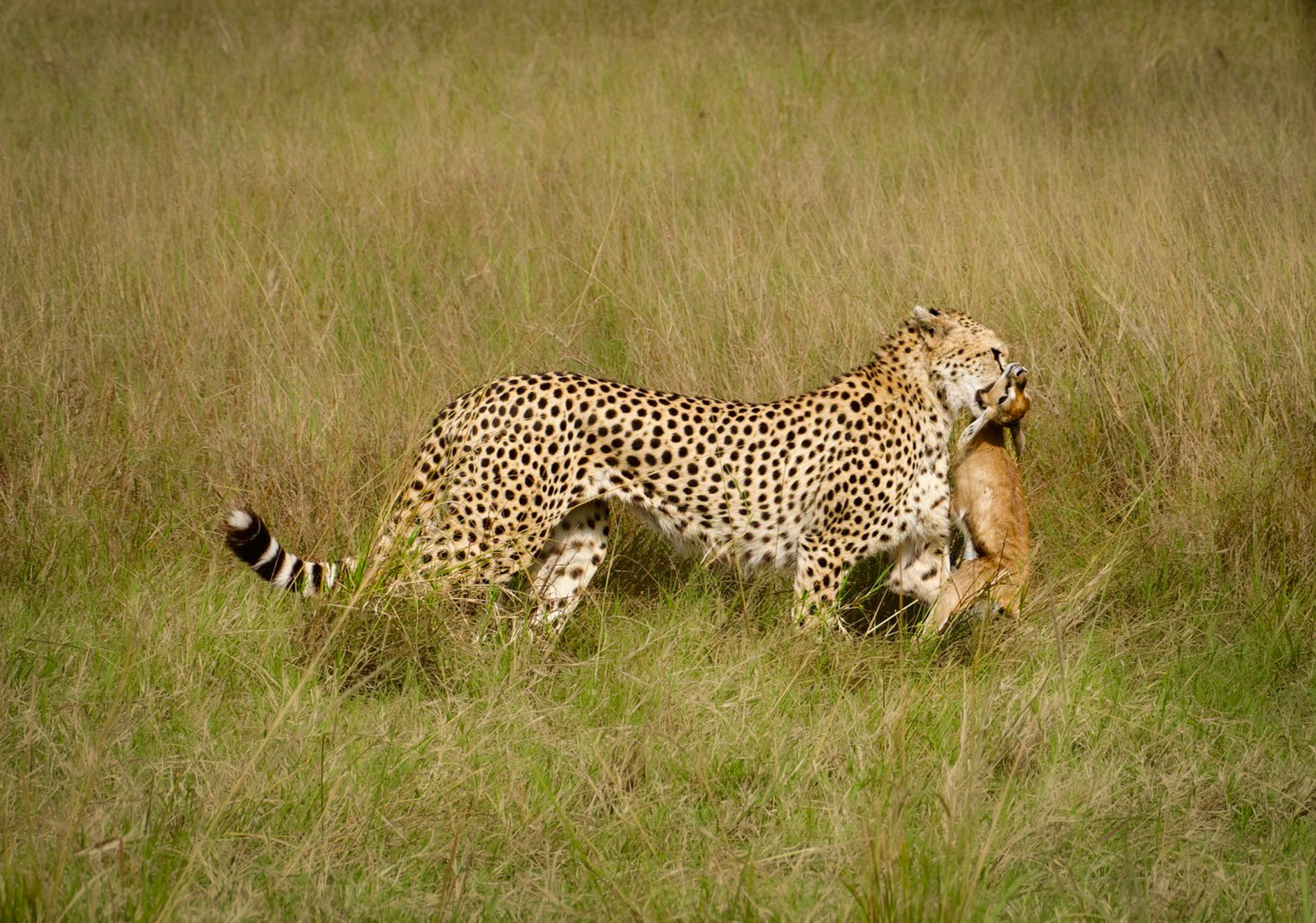 Hi Ling Ling. Andrew invited me to comment on your nice image. I find that it is often difficult to separate a cheetah from its environment as they often share the same tonality. As such, I first selected the cheetah in LR. I slightly reduced the highlights and added a bit of texture. I duplicated and inverted the mask and slightly darkened the background and added negative clarity and dehaze. I used a separate mask to brush in some shadow to the back of the gazelle and a bit to the back of the cheetah's head. Finally, I added a touch of vignette. Just some ideas. |